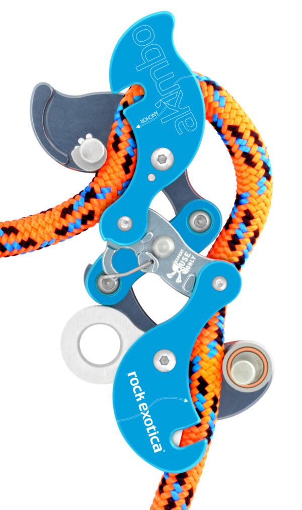 The Akimbo is a versatile mid-line attachable friction device that allows climbers to ascend and descend a stationary or moving rope system without changing equipment, and without detaching from your saddle. Adjustable settings allow for optimal performance with a range of climber weights and rope diameters.