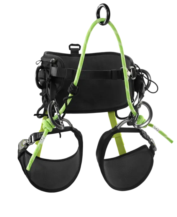 – The angle of the lateral fastening eyelets can also be adjusted under load thanks to a smart adjustment mechanism for an optimum working position in the tree