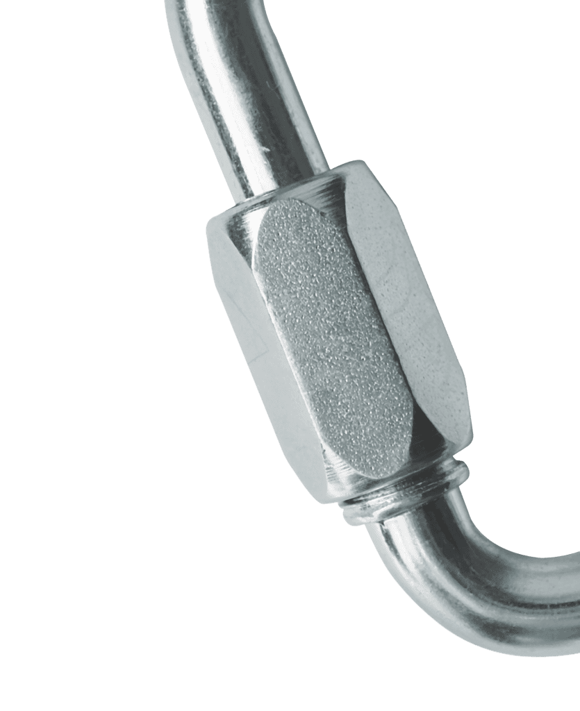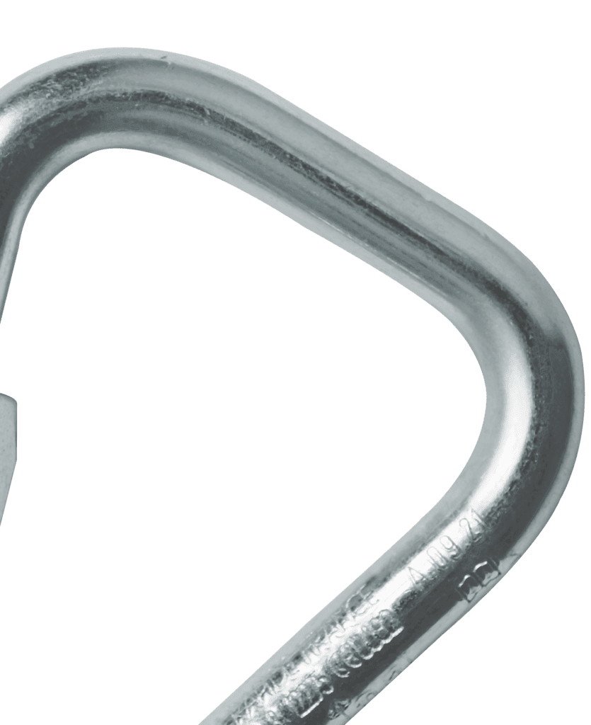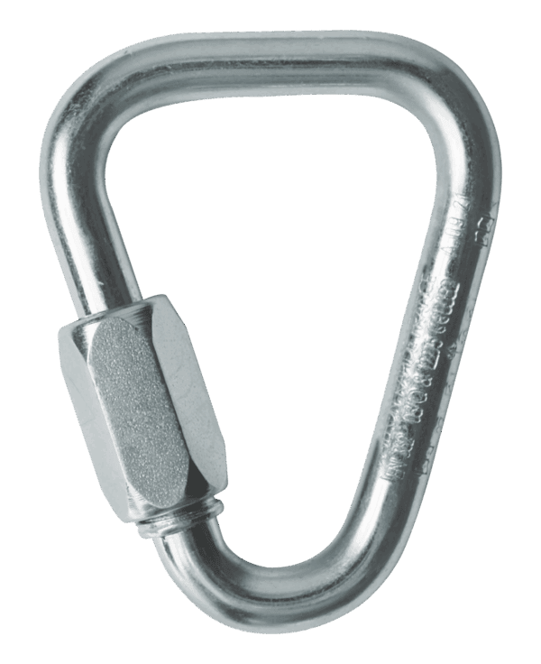 Certified triangle screw link for the most diverse fields of application, e.g. fixing a chest ascender on a chest harness.
