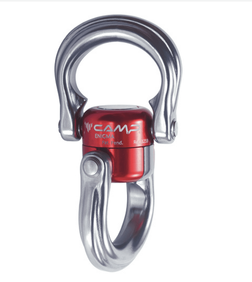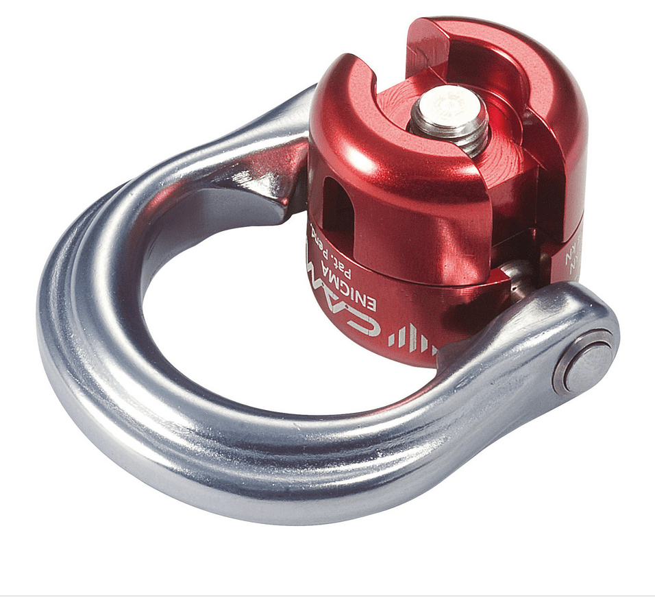 The Enigma is a completely openable swivel with large pivoting shackles that allow for connections directly to both metal and textile devices without the use of connectors.