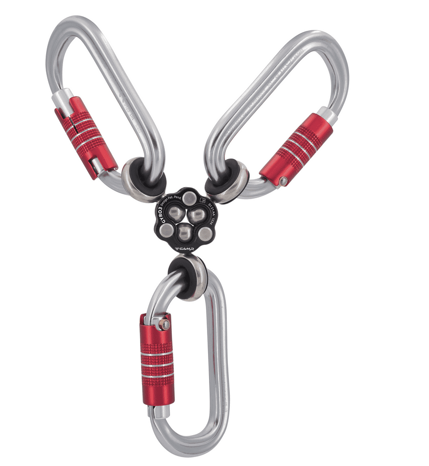 A compact and extremely versatile rigging system featuring CAMP’s triple swivel design.