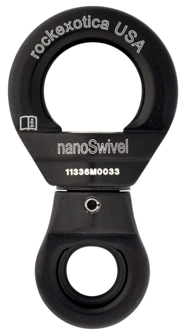 The Nano is one of the lightest load rated swivels available, and features a thrust bearing to provide a compact form factor. The connection eye uses an integrated rubber o-ring that holds the Nano snugly in place on most carabiners.