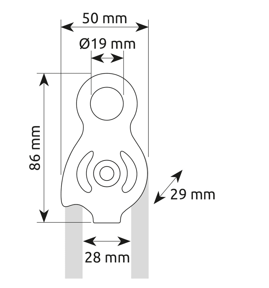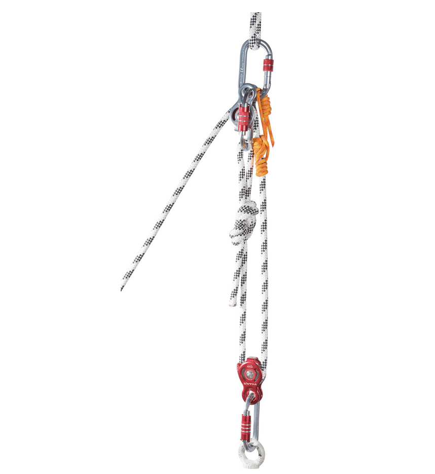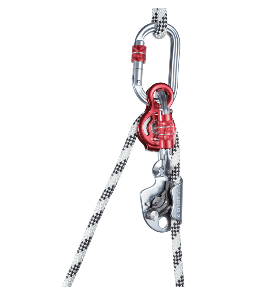The main attachment point allows for full rotation of the carabiner. For use with ropes up to 13 mm. Prusik minding, the self-locking knot can be installed on one side. Self-lubricated bushings are sufficient for light applications at low speed.