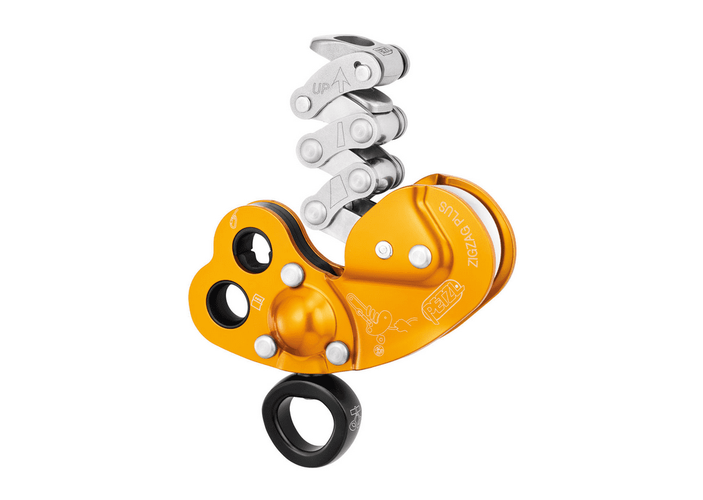 The ZIGZAG PLUS mechanical Prusik allows the user to move around efficiently in a tree using classic Prusik pulley system technique. The friction chain provides precision and fluidity when moving around. The pulley is mounted on sealed ball bearings to allow the slack to be taken up easily. Can be used on either doubled ropes or a single rope (in conjunction with the CHICANE), providing great versatility. The lower attachment hole with high-efficiency swivel ensures stable and correct positioning of the mechanical Prusik and optimal rope glide through the device.